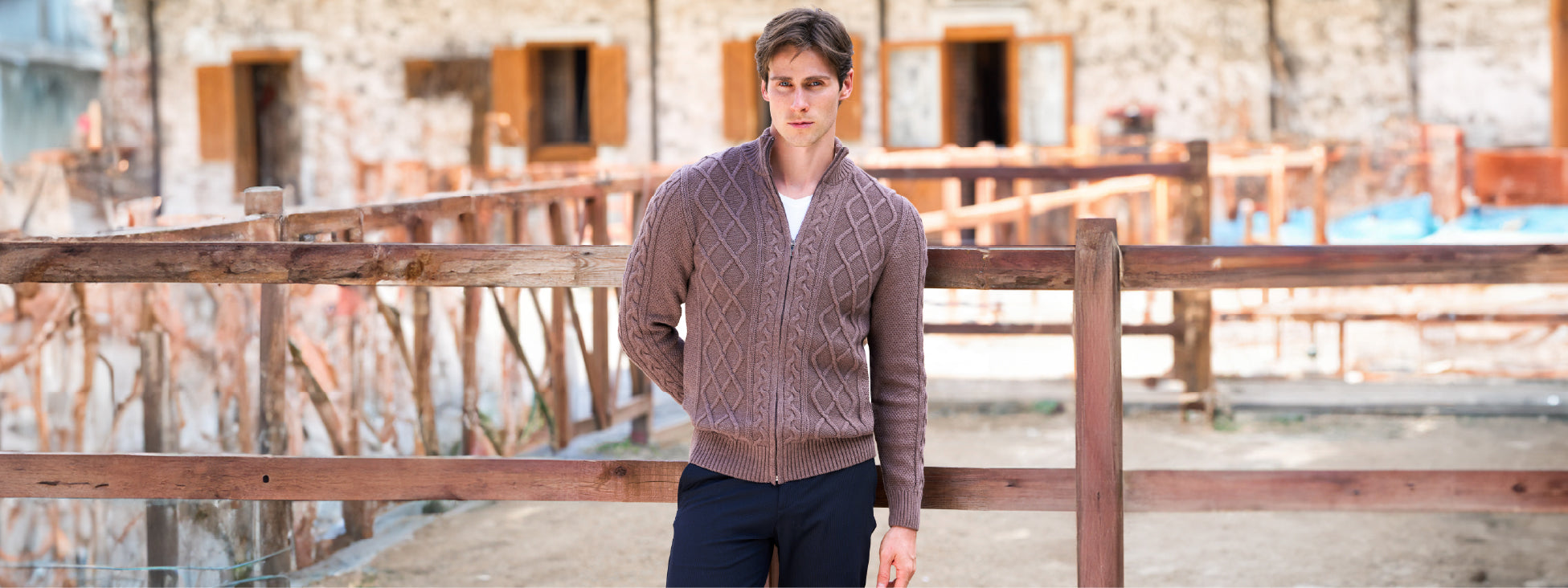 Cable Knit Full Zipper Long Sleeve Cardigan