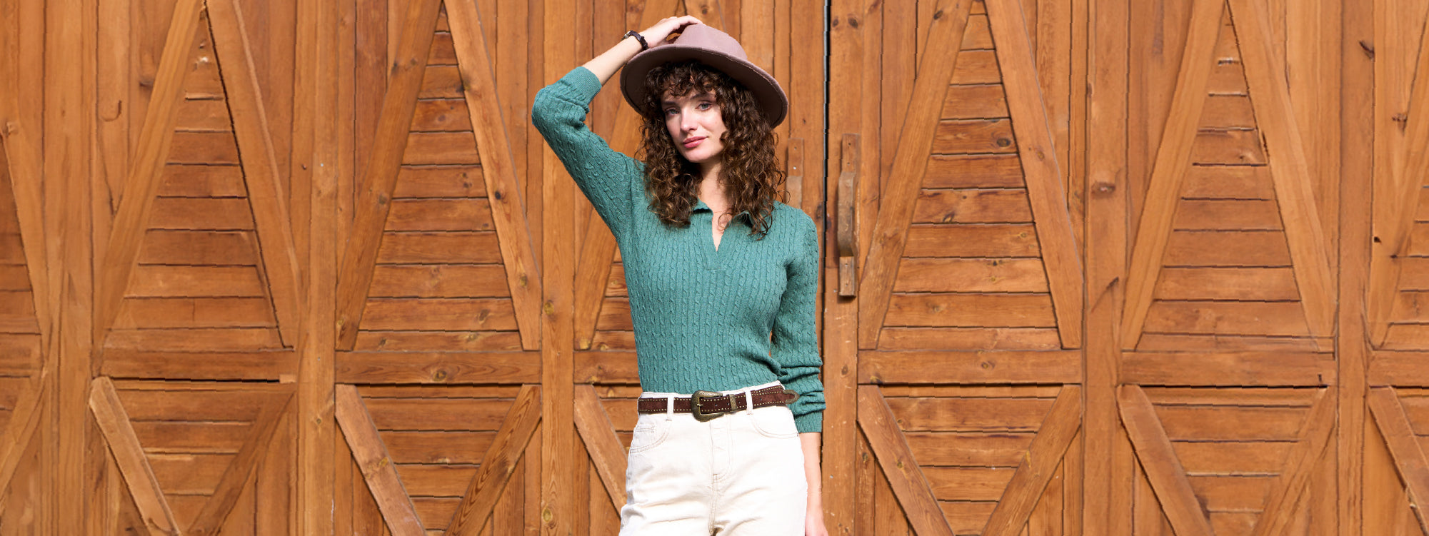 Cable Knit Buttonless Long Sleeve Polo Pullover